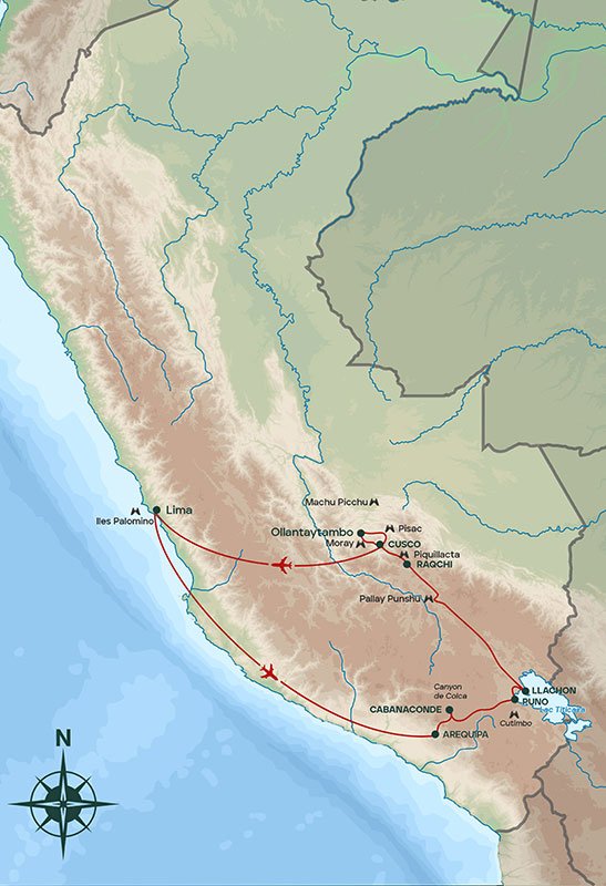 De la côte pacifique aux sommets andins, ce voyage traverse les multiples visages du Pérou: villes coloniales, sites incas majestueux, paysages grandioses et rencontres authentiques. Conçu pour conjuguer découverte culturelle, immersion locale et itinéraires hors des sentiers battus, il offre une vision intime et nuancée du pays, loin des circuits standardisés. Nous débutons à Lima, capitale foisonnante et contrastée, avec ses musées, son centre historique et une escapade maritime vers les îles Palomino, royaume des otaries et des oiseaux marins. Cap ensuite sur Arequipa, la «ville blanche», et le spectaculaire canyon de Colca, où planent les condors. Le voyage se poursuit vers le lac Titicaca, avec une immersion chez l’habitant à Llachon sur la péninsule de Capachica, et la découverte des îles flottantes Uros Titino, loin des circuits classiques. Nous rallions ensuite Cusco via un itinéraire exclusif de deux jours à la découverte des trésors qui jalonnent cette route: sites archéologiques oubliés, montagne de couleurs, artisanat local et églises baroques. Nous plongeons ensuite dans l’histoire inca à Cusco, Pisac, Ollantaytambo, Moray et Maras, en privilégiant des horaires choisis et des sites moins fréquentés. Le Machu Picchu est proposé en option, laissant à chacun la liberté de l’inclure ou non. Le voyage s’achève à Lima avec la découverte de Miraflores, la Huaca Pucllana et le musée Larco, pour une conclusion culturelle et gastronomique. Cet itinéraire, fruit de plus d’une dizaine d’années de voyages, alterne hôtels confortables, hébergements familiaux et expériences immersives. Accessible à tous grâce à un rythme équilibré et des marches faciles, il offre une expérience rare : vivre le Pérou autrement, au plus près de ses habitants et de ses paysages. Tout au long du voyage, la gastronomie péruvienne est mise à l’honneur à travers une sélection variée de lieux de repas: cuisine familiale chez l’habitant, restaurants populaires typiques, buffets régionaux et belles tables dans des cadres exceptionnels. En amont du circuit principal, une extension optionnelle de six jours sur la côte Sud permet de découvrir une autre facette du Pérou: vestiges archéologiques côtiers, oasis cachées, dunes spectaculaires, canyons désertiques et cités oubliées. De Pachacamac à Nazca, cette escapade entre mer et désert permet de découvrir les trésors cachés de la côte Sud du Pérou.