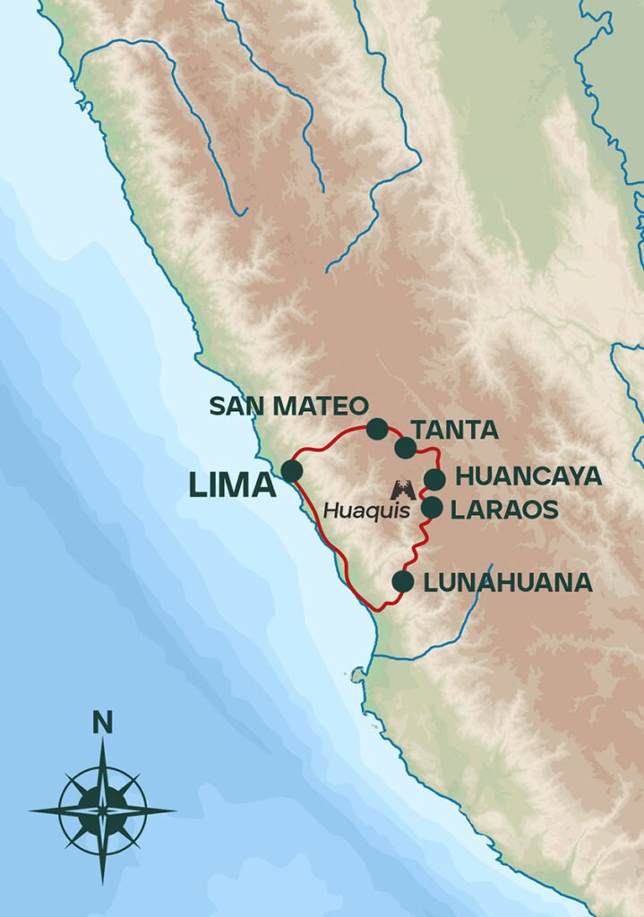 Le matin, descente dans la vallée pour rejoindre Miraflores, un village niché au fond d’une vallée dans un paysage spectaculaire. De là, nous partons en randonnée vers les ruines de Huaquis, un ancien village perché, dominé par un vaste système de terrasses qui surplombent la vallée. Le sentier vertigineux et taillé dans la roche domine la vallée. Retour au village pour une courte visite, avant de reprendre la route le long du río Cañete. Nous passons par la lagune de Piquecocha, le village de Vitis et son superbe mirador, puis atteignons Huancaya. Après le repas, découverte du village et de ses célèbres cascades aux eaux turquoise, joyau de la réserve Nor Yauyos Cochas.